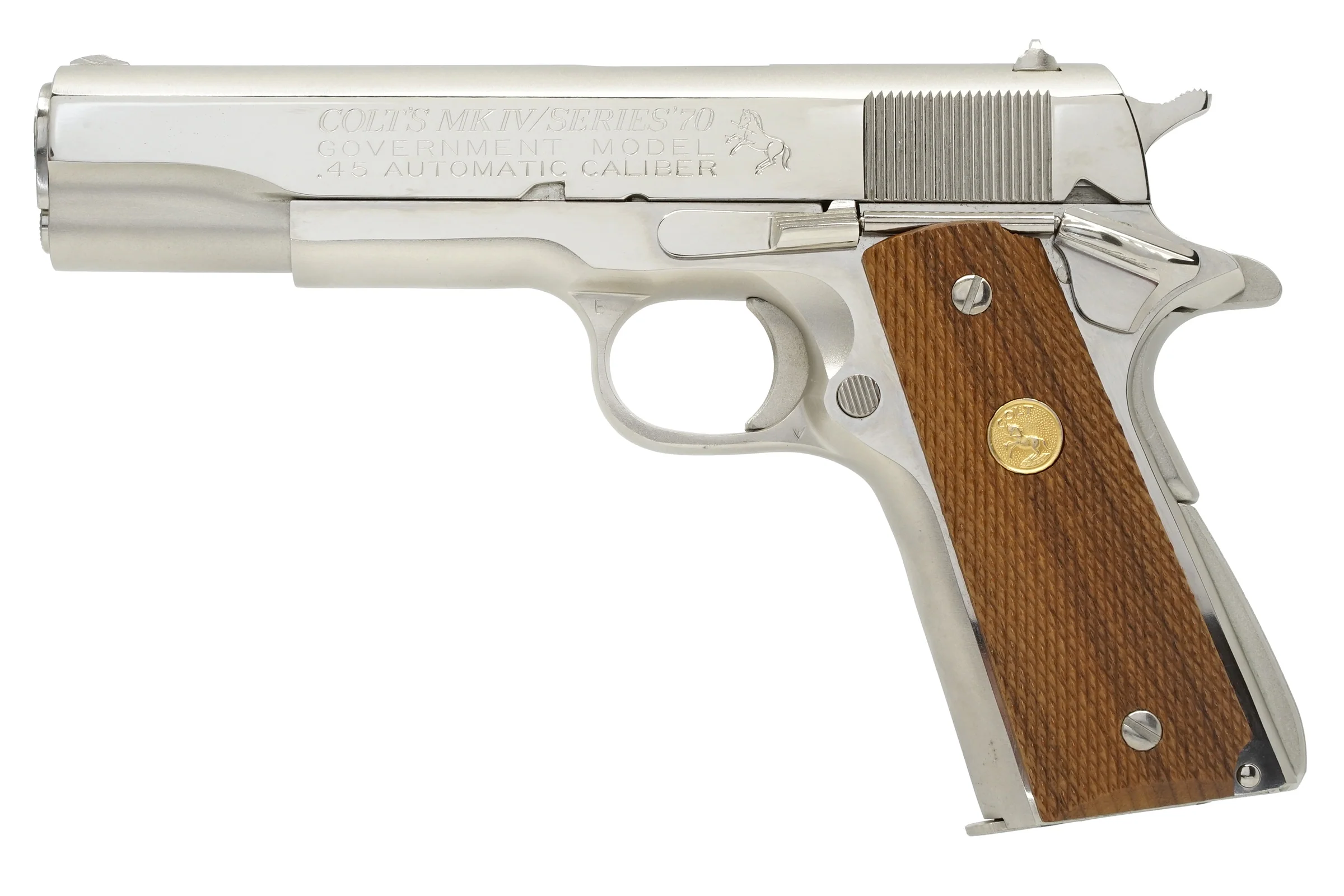 The Colt .45 Government Series 70 is a semi-automatic pistol originally designed by John Browning in 1911. It is an evolution of the original model that formed the basis for the M1911 pistol. The Series 70 is one of the most famous variants of this model and is still valued by many shooters today, both for duty and for private use.